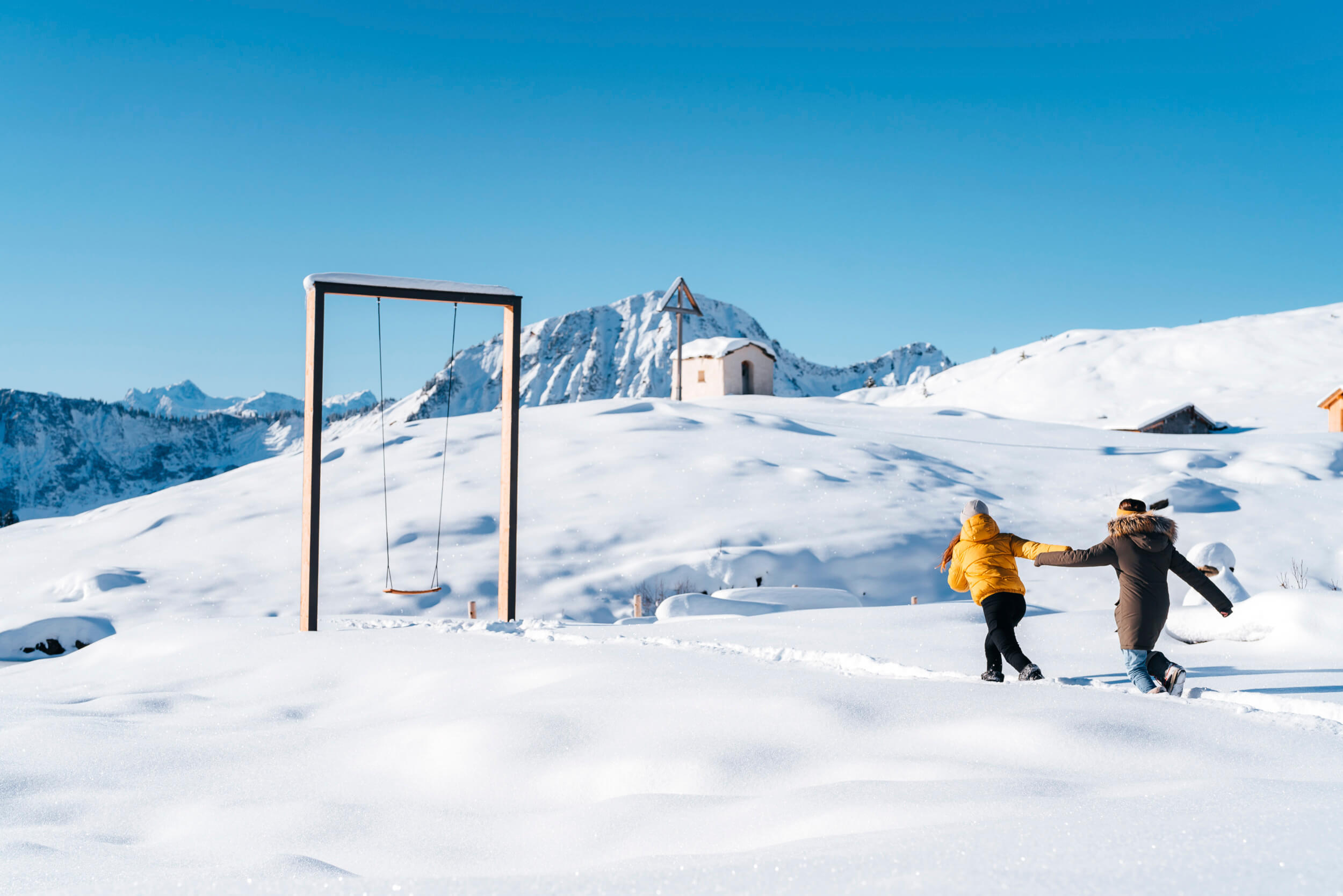 Wenn der erste Schnee fällt und die Landschaft rund um Fontanella in glitzerndes Weiß getaucht ist, zeigen sich der Seewaldsee, das Große Walsertal und der angrenzende Bregenzerwald von seiner märchenhaften Seite. Ob beim Wintersport, bei einer Tasse Tee am Kamin oder beim Blick auf die verschneiten Berggipfel – der Winter am Seewaldsee bietet besondere Momente inmitten unberührter Natur.